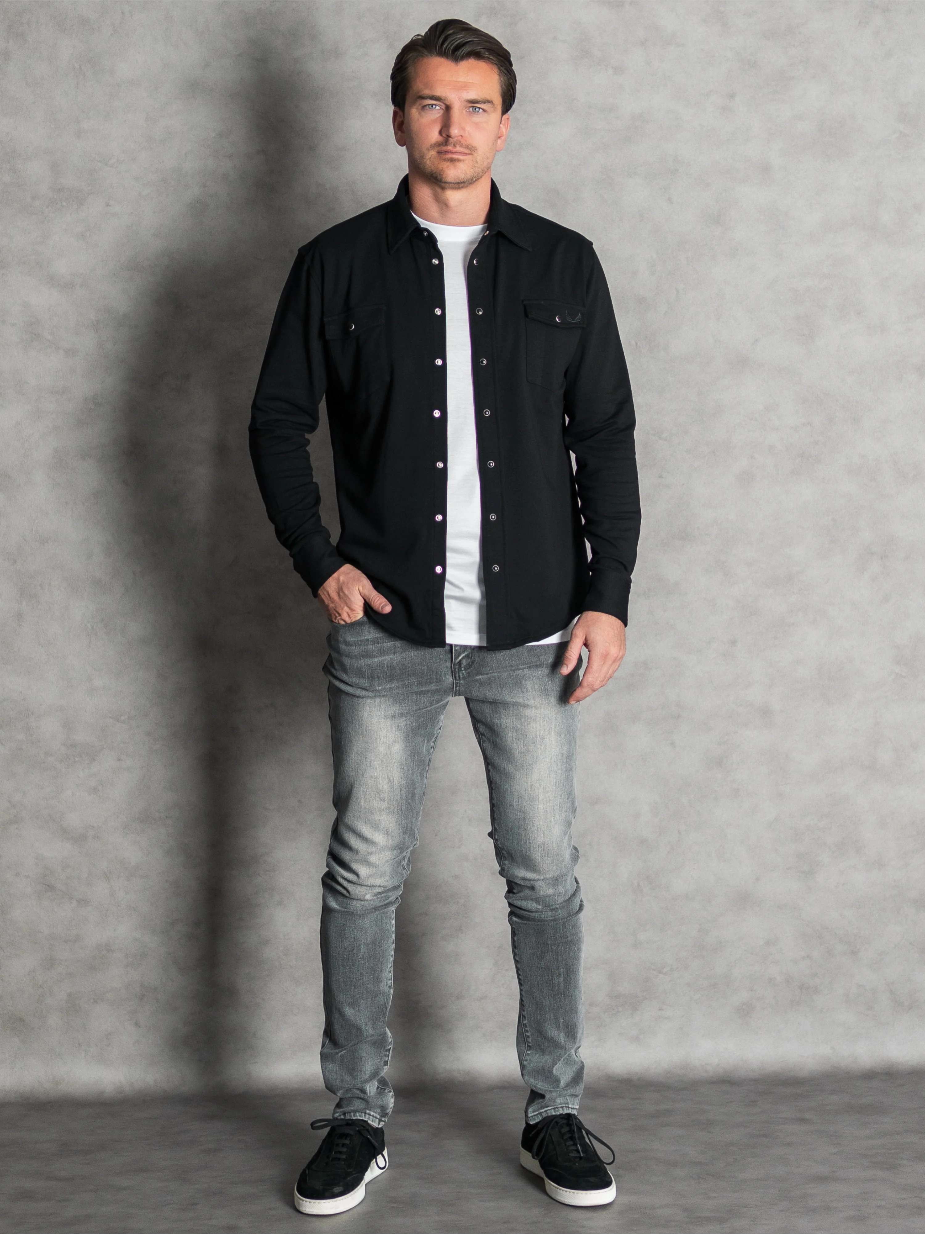 The Rancher overshirt combines smart style with everyday comfort. Designed in a regular fit, it layers easily over a tee or under a jacket. Made from a soft knitted cotton blend with polyester and spandex, it offers stretch, breathability and a lightweight feel. The snap buttons and double chest pockets add a functional touch, keeping the look sharp yet relaxed. Comfortable, versatile and easy to wear, the Rancher is made for men who like effortless style that works anywhere.