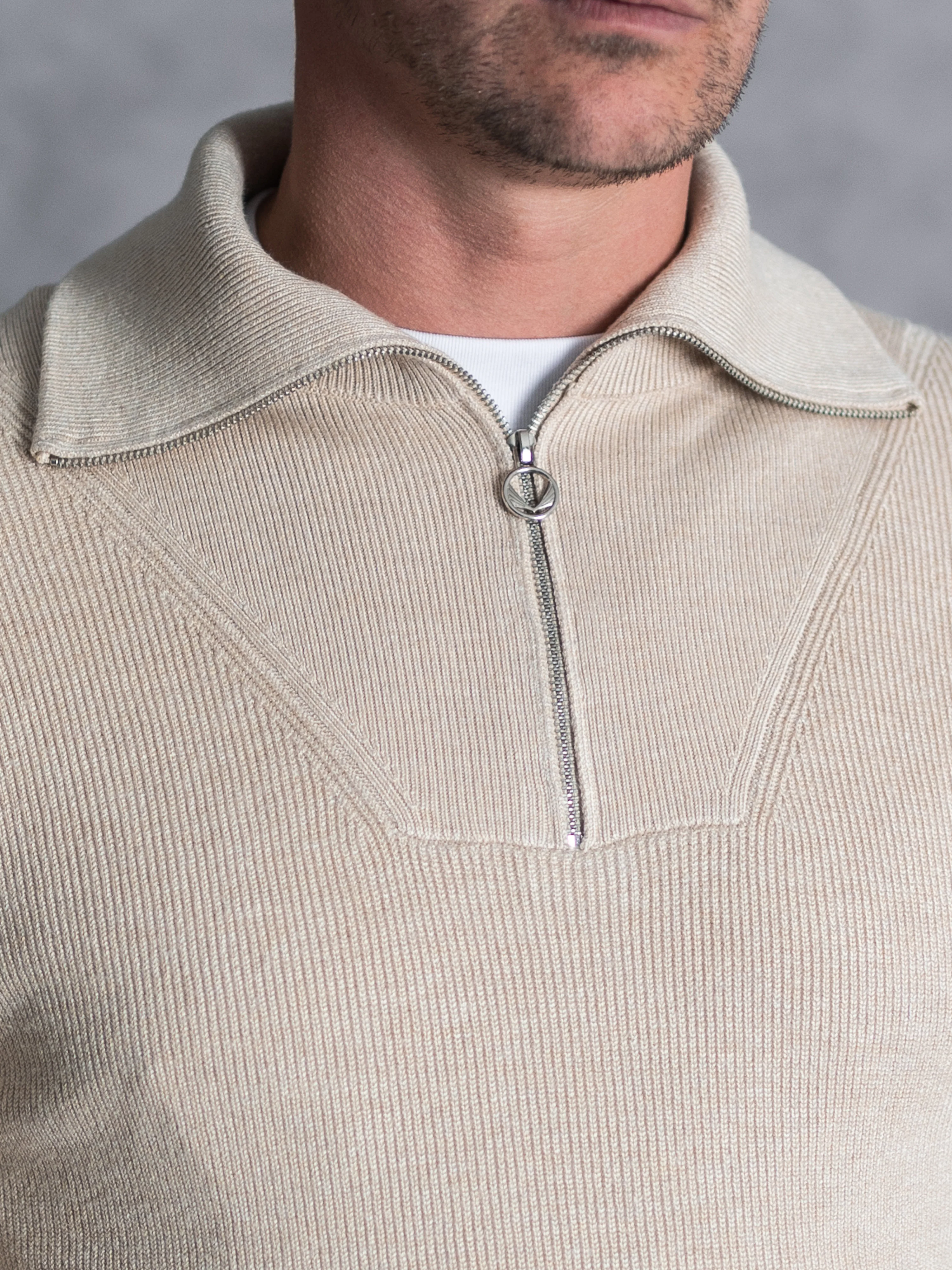 The Skagen pullover blends versatility with modern edge. Designed in a slim fit, it follows your shape without feeling tight. The ribbed knit adds subtle texture and shine, giving a clean yet elevated look. Made from a viscose and nylon blend, it feels smooth, stretches easily and stays lightweight throughout the day. The half zip collar lets you wear it open for a relaxed feel or closed for a sharper look. This is a piece built for men who like to keep options open without losing style.