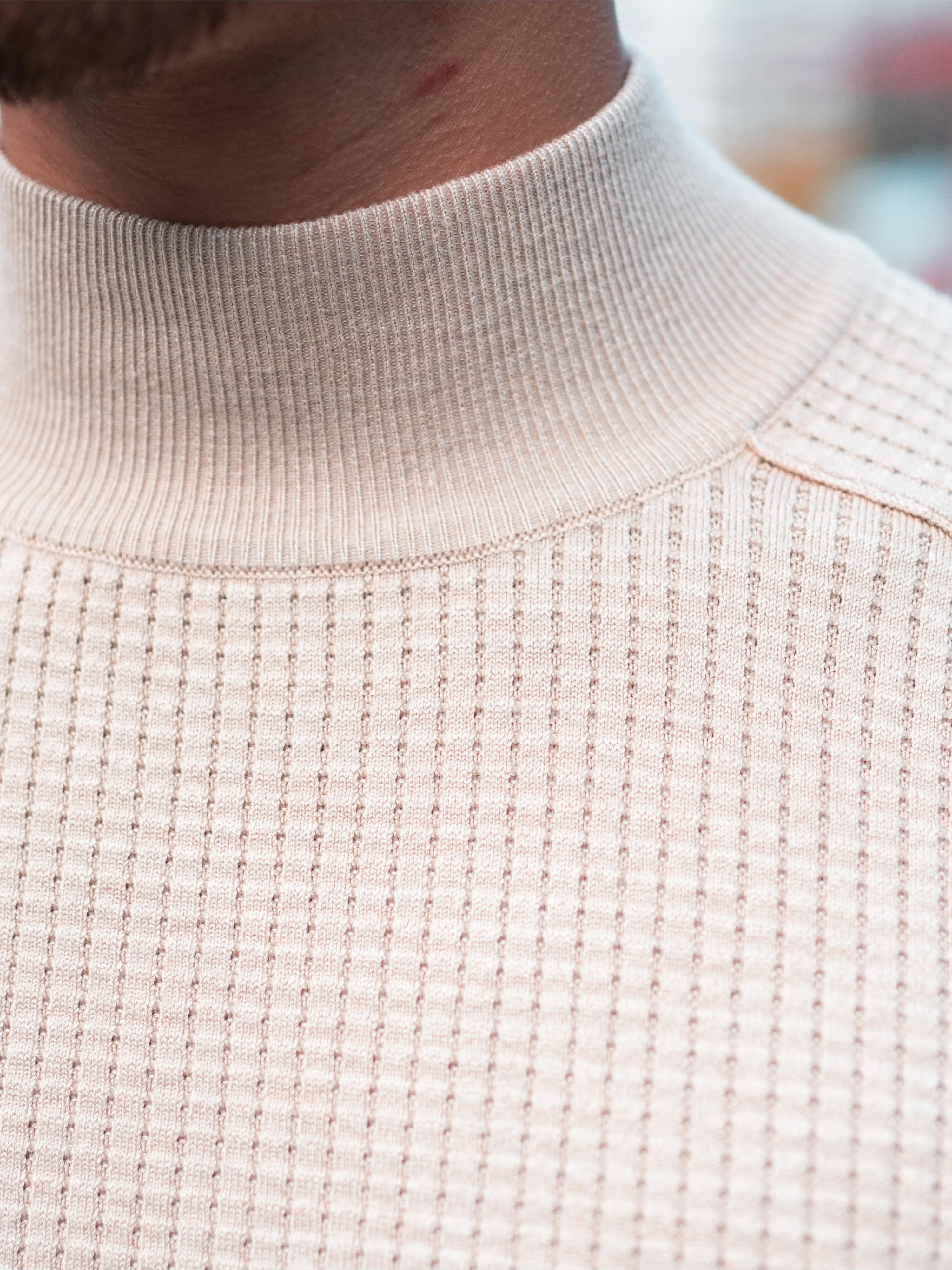 The Skane turtleneck pullover stands out with a clean look and a unique texture. Designed in a slim fit, this knit highlights your physique while keeping a modern, confident shape. The waffle knit adds depth and a subtle shine, giving it a refined edge without trying too hard. Made from a lightweight viscose and nylon blend, it feels soft, stretches easily and stays breathable all day. It keeps you warm on cooler days and layers easily when the temperature drops. This is everyday luxury made simple.