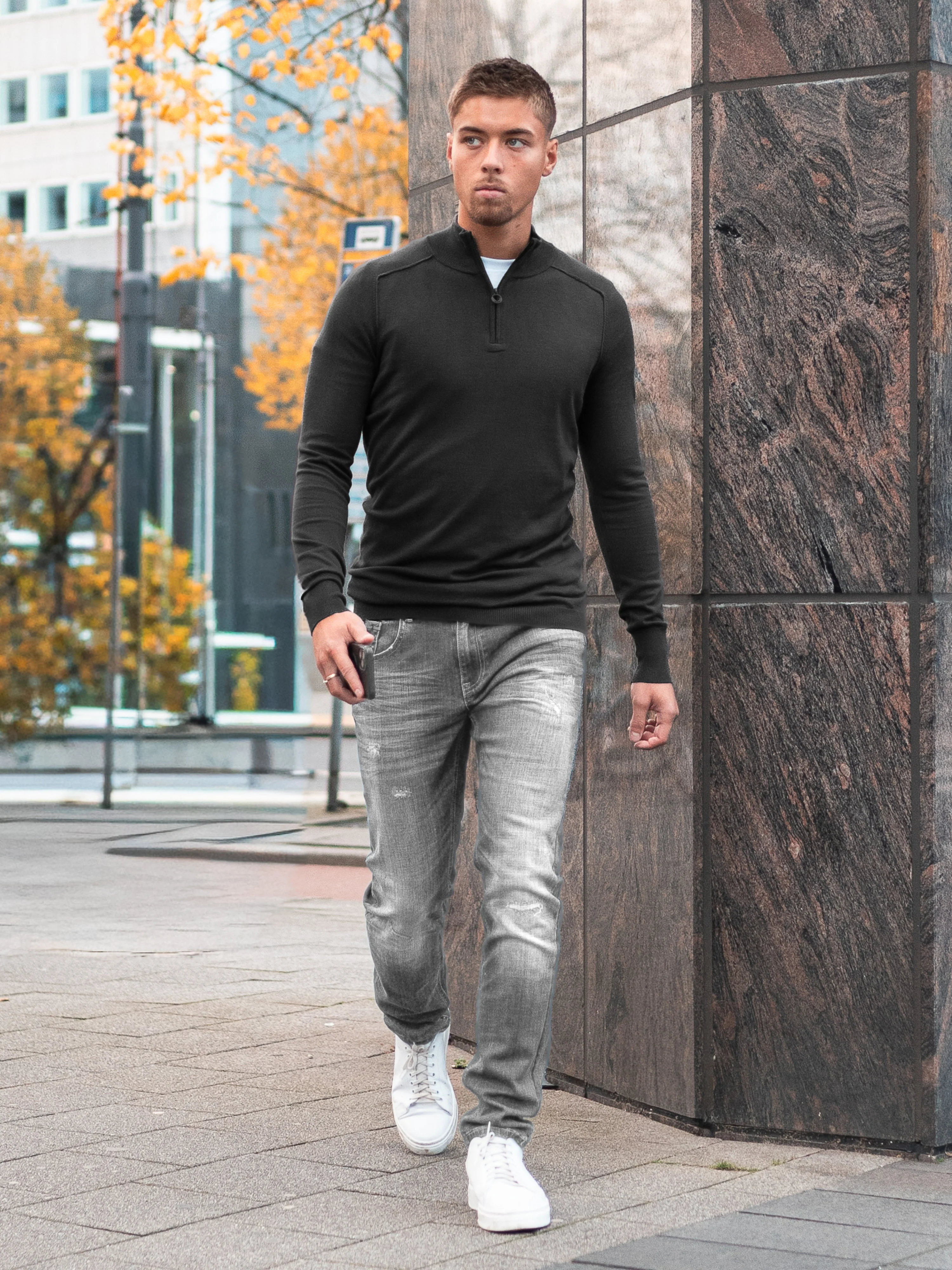 The Spanzip Black is the ultimate foundation for a sharp, modern wardrobe. This pullover combines a clean, minimalist aesthetic with the functionality of a quarter-zip collar. The deep black shade offers a powerful, versatile look that effortlessly transitions from a casual day outfit to a high-end evening ensemble.